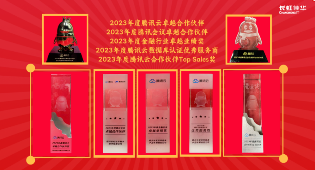 Recently, the "2024 Tencent Industrial Partner Conference" was held in Sanya. At this conference, Changhong Jiahua, with its excellent digital performance and excellent technical service strength in Tencent Cloud business, Won the "2023 Tencent Cloud Outstanding Partner", "2023 Tencent Conference Outstanding Partner", "2023 Financial Industry Outstanding Performance Award", "2023 Tencent Cloud Database Certification Excellent Service provider", "2023 Tencent Cloud Partner Top Sales Award" and other five awards, showing a shining report card.