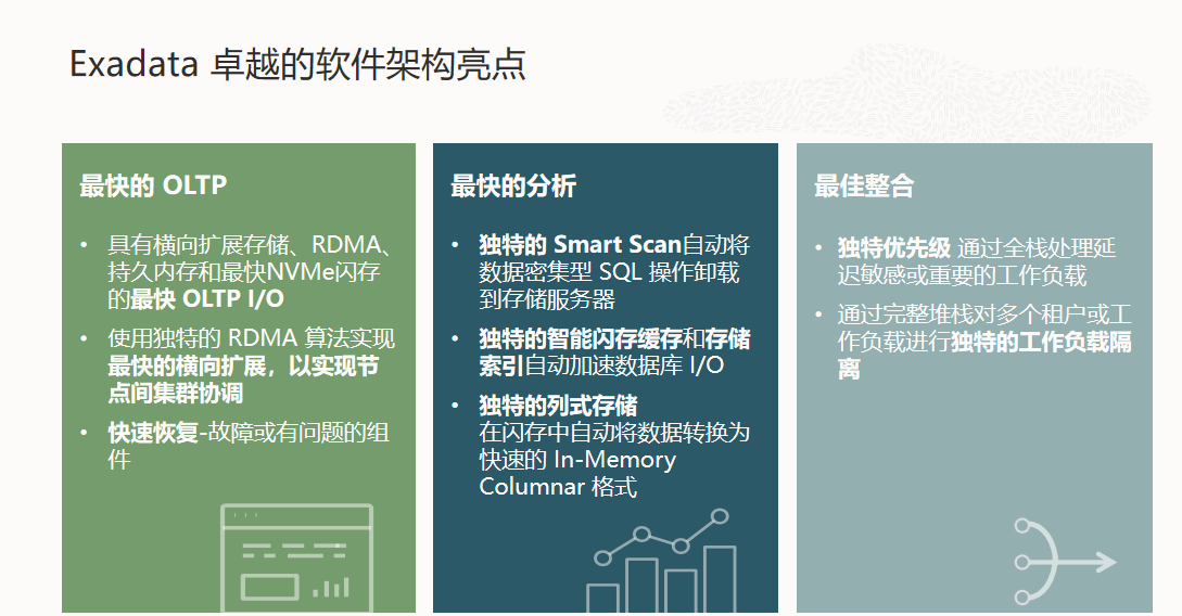 Oracle Exadata Database Machine 是一个可部署在企业数据中心的集成式全栈平台。该平台与 Oracle Database 协同设计,可快速、高可用性地运行各种类型和规模的数据库工作负载。它可以利用更快的事务处理、分析和数据库内机器学习 (ML) 功能帮助企业充分挖掘数据价值,改善客户体验和业务洞察。借助 Exadata Database Machine,企业可以将 Oracle 数据库整合到更少的基础设施上,减轻 DBA 工作负担,节约总拥有成本,并降低数据中心复杂性。