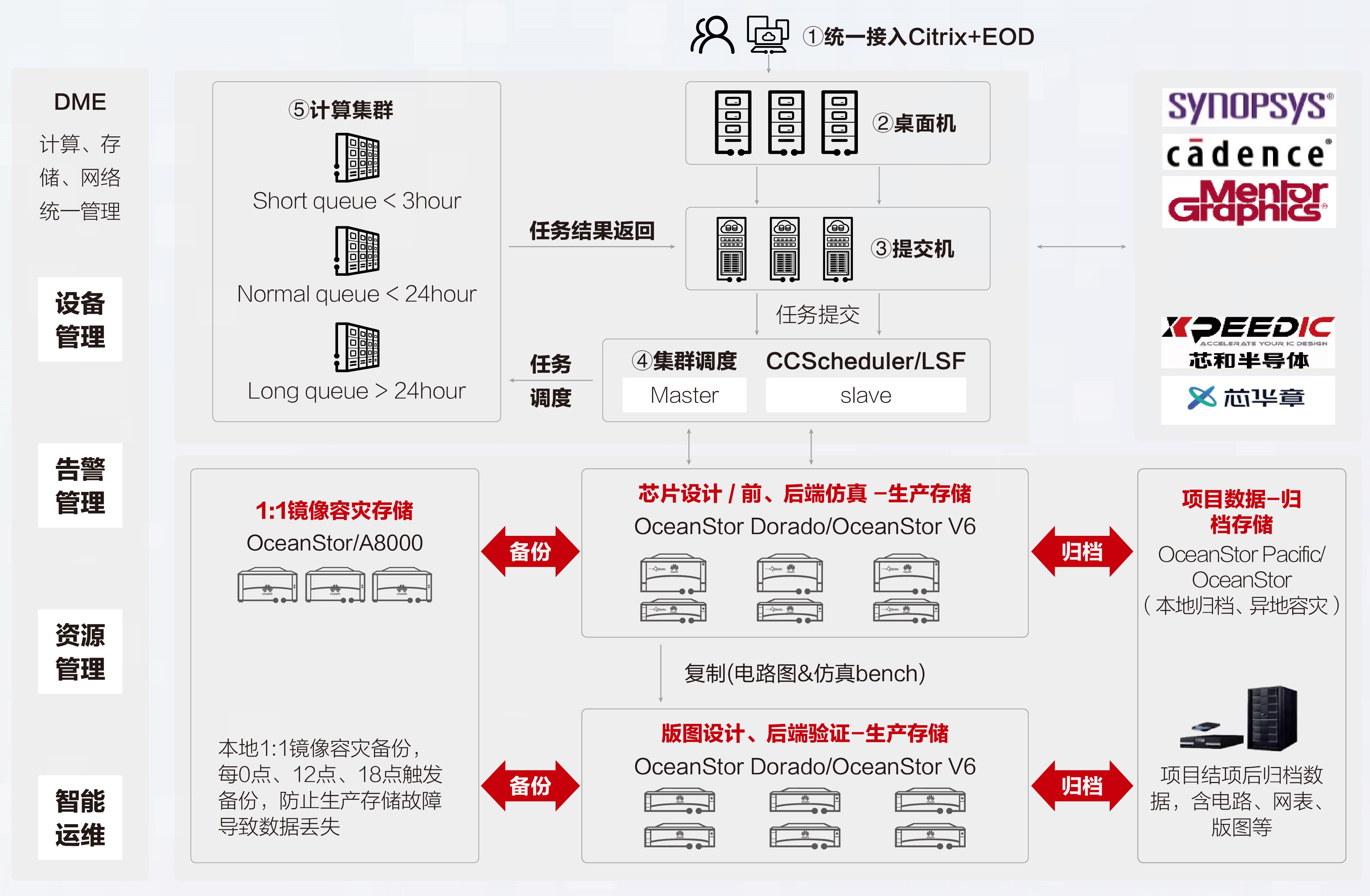 华为半导体EDA仿真存储解决方案,是与华为海思联合打造的解决方案,并在华为海思芯片EDA设计过程中的最佳实际使用体验和应用优化,为芯片仿真做了专项优化。
