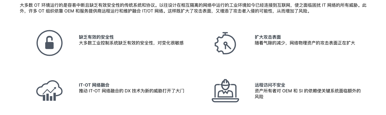 随着工业环境与外部和内部应用程序以及企业 IT 网络连接的增加,关键 OT 资产面临威胁。部署能够实时缓解威胁的网络安全策略的进程受到 IT/OT 孤点的阻碍。结果可能是毁灭性的,有可能破坏服务社区的关键基础设施、资源和服务。2022 年 Fortinet 运营技术和网络安全状况报告显示,93% 的组织存在安全入侵问题,61% 的入侵影响了 OT 系统。