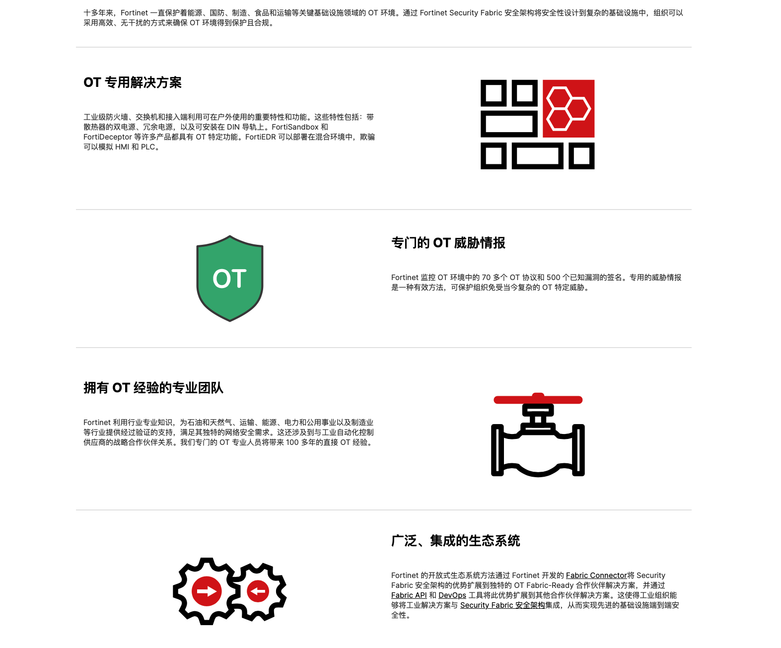 Fortinet 提供了一系列用于处理运营技术(OT)环境的解决方案,以提高工业控制系统(ICS)和自动化系统的网络安全性。