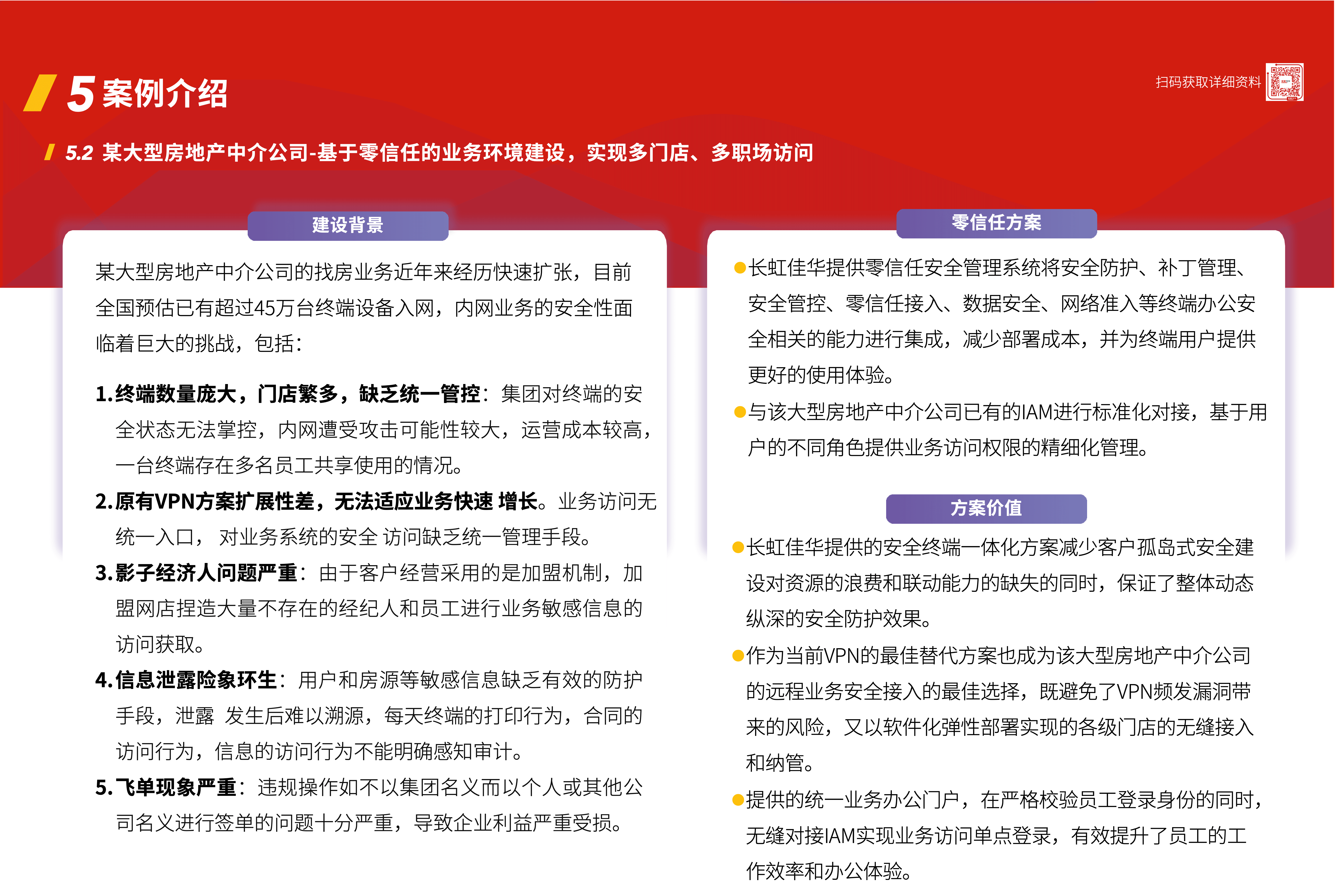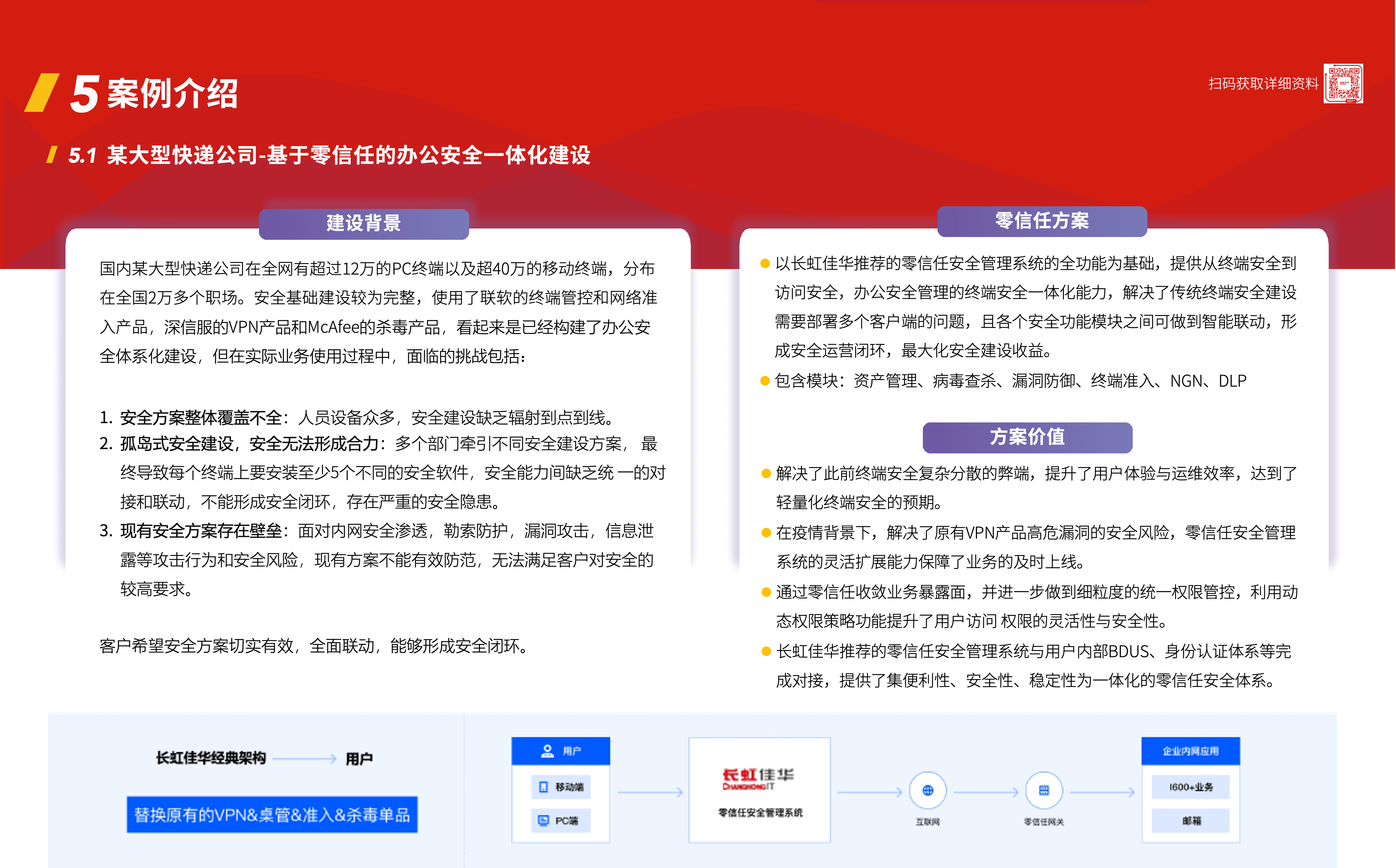 ????智能零信任安全解决方案,满足新一代网络安全架构需要的特征,帮助企业在数字化转型过程中解决传统安全架构难以解决的问题,目前已服务于政府、金融、交通等行业客户。